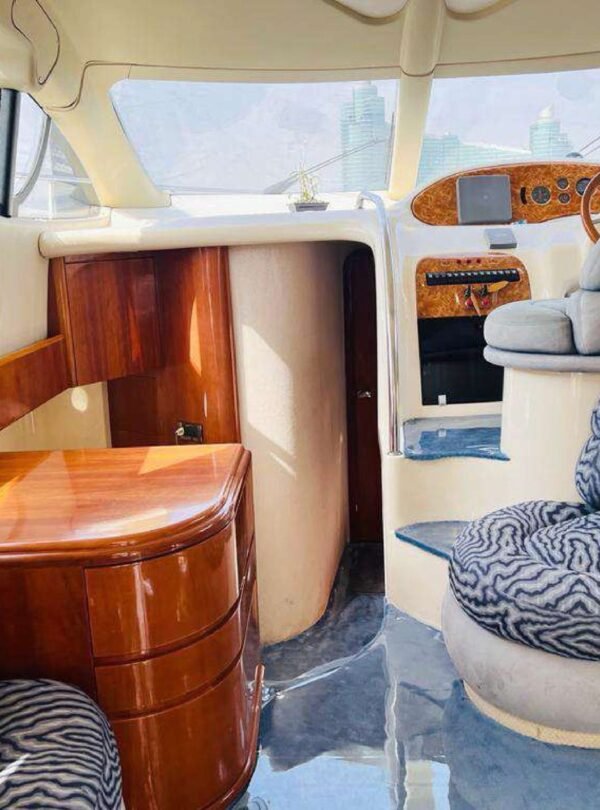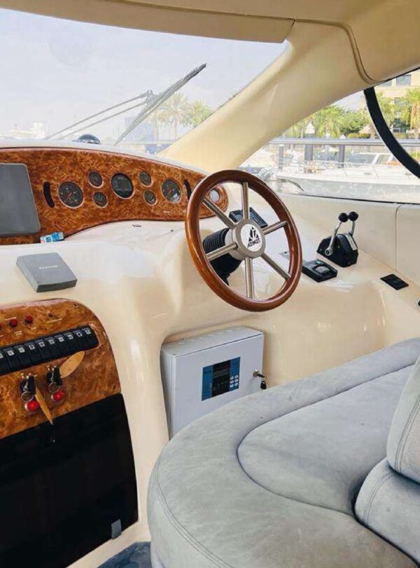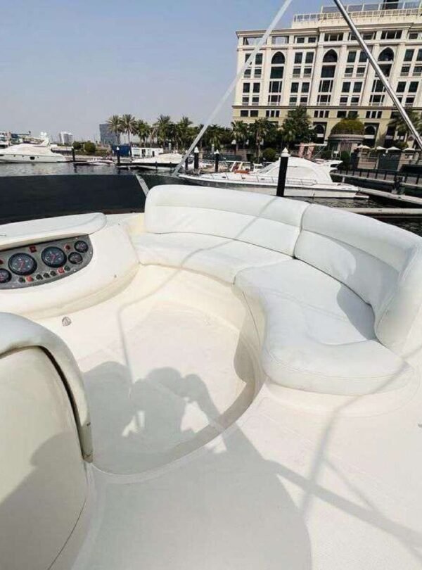 Marbella is a stylish 42ft Azimut yacht that blends sleek Italian design with smooth, effortless performance. Perfect for intimate cruising in Dubai, this yacht in Dubai offers a refined atmosphere ideal for private gatherings, romantic escapes, or small group celebrations on the water. With rates starting at just 439 AED per hour, it’s one of the most attractive options for a luxury yacht for rent in Dubai.